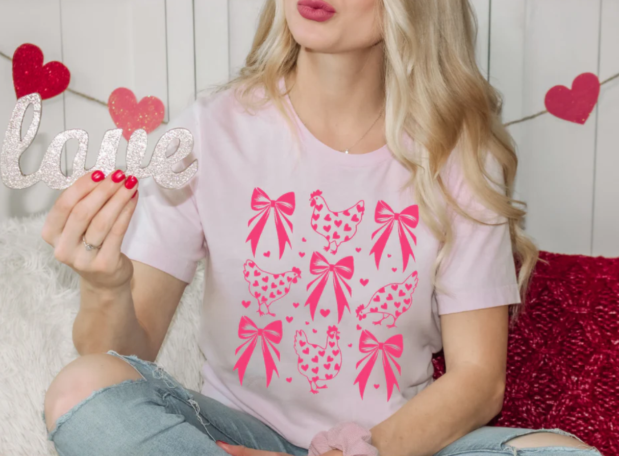 Chicken and Bows - Single Color Screen Print - H11