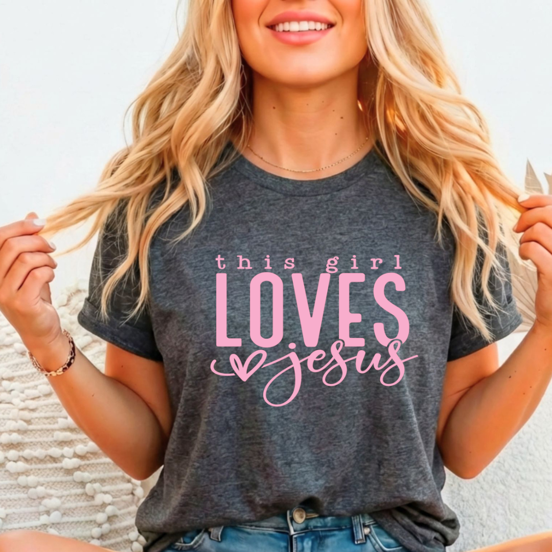 This Girl Loves Jesus - Lt PINK - Single Color Screen Print - Adult Size - A26